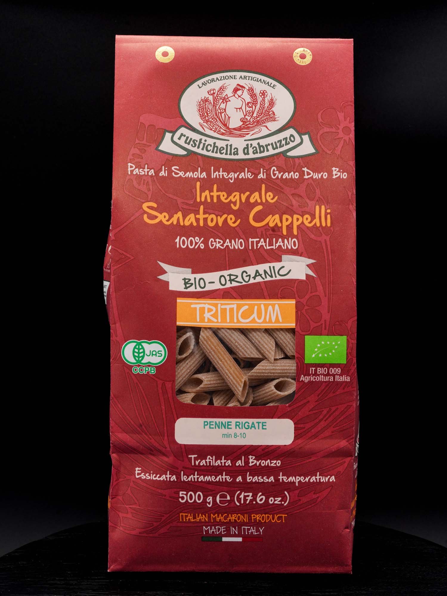Il grano Senatore Cappelli è una varietà antica di grano duro, coltivata in Italia da secoli. La sua coltivazione avviene nel rispetto delle tradizioni agricole, senza l’utilizzo di pesticidi o fertilizzanti chimici. Questo garantisce la purezza del grano e la qualità superiore della pasta Rustichella d’Abruzzo. Le nostre penne rigate integrale, prodotte con questo pregiato grano, conservano intatte le proprietà nutritive e il sapore inconfondibile, offrendo un pasto sano e delizioso.